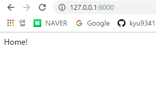 return HttpResponse("Home!") # 로그인이 되지 않은 경우 Home!출력
